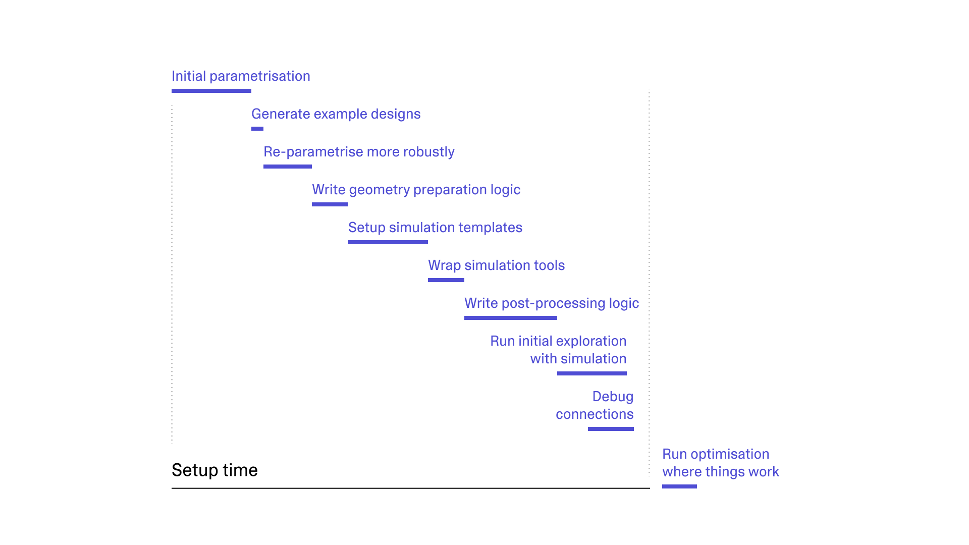 In all of the engineering problems we’ve worked on, setting up the pipeline means: writing automation logic, connecting tools together, debugging, and thinking through how parametric changes affect everything from geometry to post-processing of simulation.